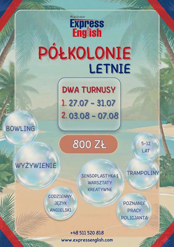 Zapraszamy dzieci w wieku 5–12 lat na wyjątkowe półkolonie letnie z językiem angielskim, pełne atrakcji, ruchu, kreatywności i dobrej zabawy!